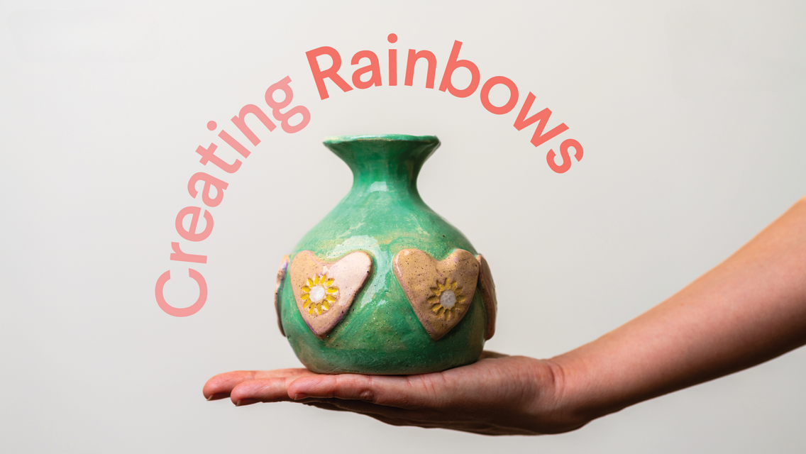 The rainbow motif offers Bedford Day Options artists so much scope to explore creatively, both practically and metaphorically, with the use of colour, blending, elevation, shape and form. The rainbow evokes ideas of magic, reward, renewal - and perhaps a sense of yearning... rainbows are always just out of reach.