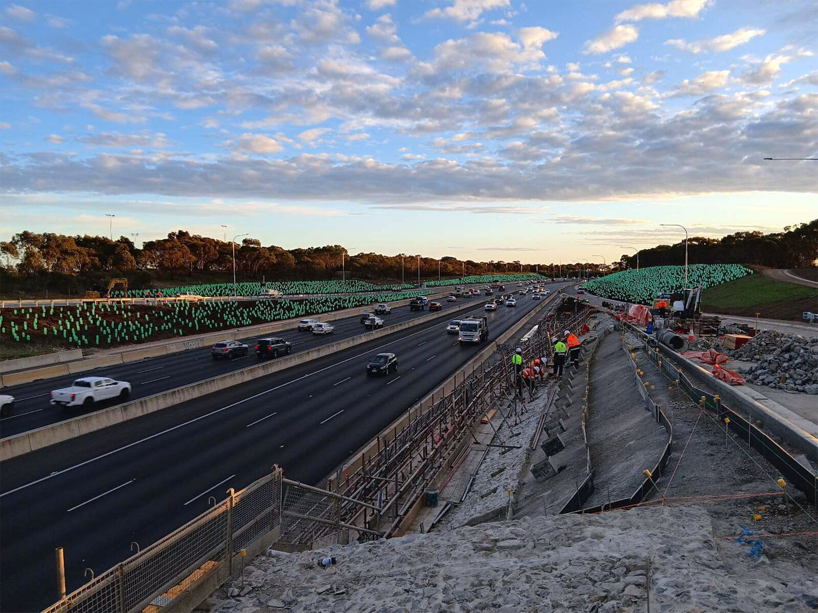 GreenInc played a major role in the Southern Expressway project, one of the state's most significant infrastructure initiatives. As the largest contributor by planting volume, GreenInc was subcontracted to deliver 26,042 tubestock and 15,755 potted plants. Managed by Acciona and with re-vegetation led by Hydromulch Australia, this large-scale project showcases how infrastructure can support ecological resilience, biodiversity and long-term visual impact.