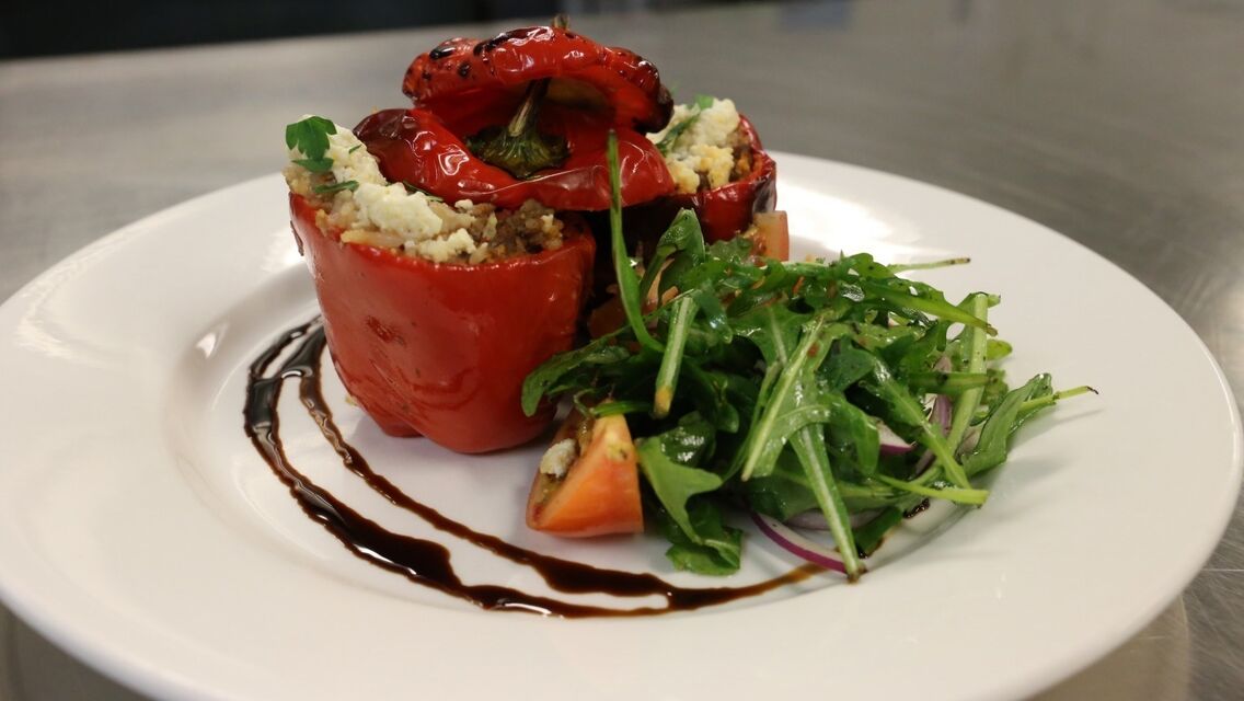 - Drizzle olive oil over stuffed capsicums. Bake in the preheated oven for 30 minutes, until capsicums are cooked and filling is heated through.