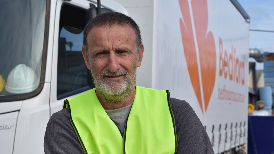 I started out at APG on the ride-on mowers at Linear Park, which was very joyful and relaxing and these days I drive the new Bedford truck.